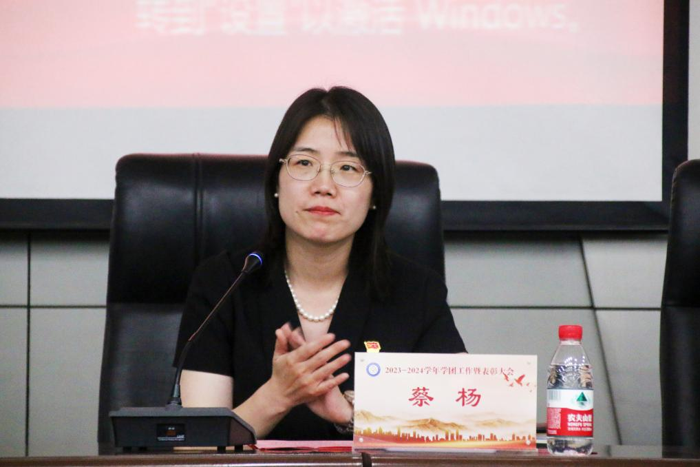 最后,蔡杨做总结发言,她首先点明了过去一年学团工作的亮点,对做好新一年学团工作提出了要求:一是以高质量党建为引领,落实立德树人根本任务,塑造投身教育强国之魂。要始终坚持党对高校的全面领导,全面加强理想信念教育,积极推进党建与思政教育协同育人,将“双育双强”的工作思路,贯穿于思政教育、人才培养的全过程;二是以“三全育人”为支撑,汇聚育人系统合力,夯实投身教育强国之基;要构建“立体化”大思政育人格局,优化“专业”辅导员队伍建设体系,打造“联动式”学生党建思政新业态;三是以矢志奉献为目标,锚定为党育人为国育才,厚植投身教育强国之本。广大师生要厚植家国情怀,练就过硬本领,积极投身实践。她希望广大青年学生牢记使命、勇担重任,怀抱梦想又脚踏实地,敢想敢为又善作善成,让青春在服务中国式现代化建设的火热实践中绽放绚丽之花。