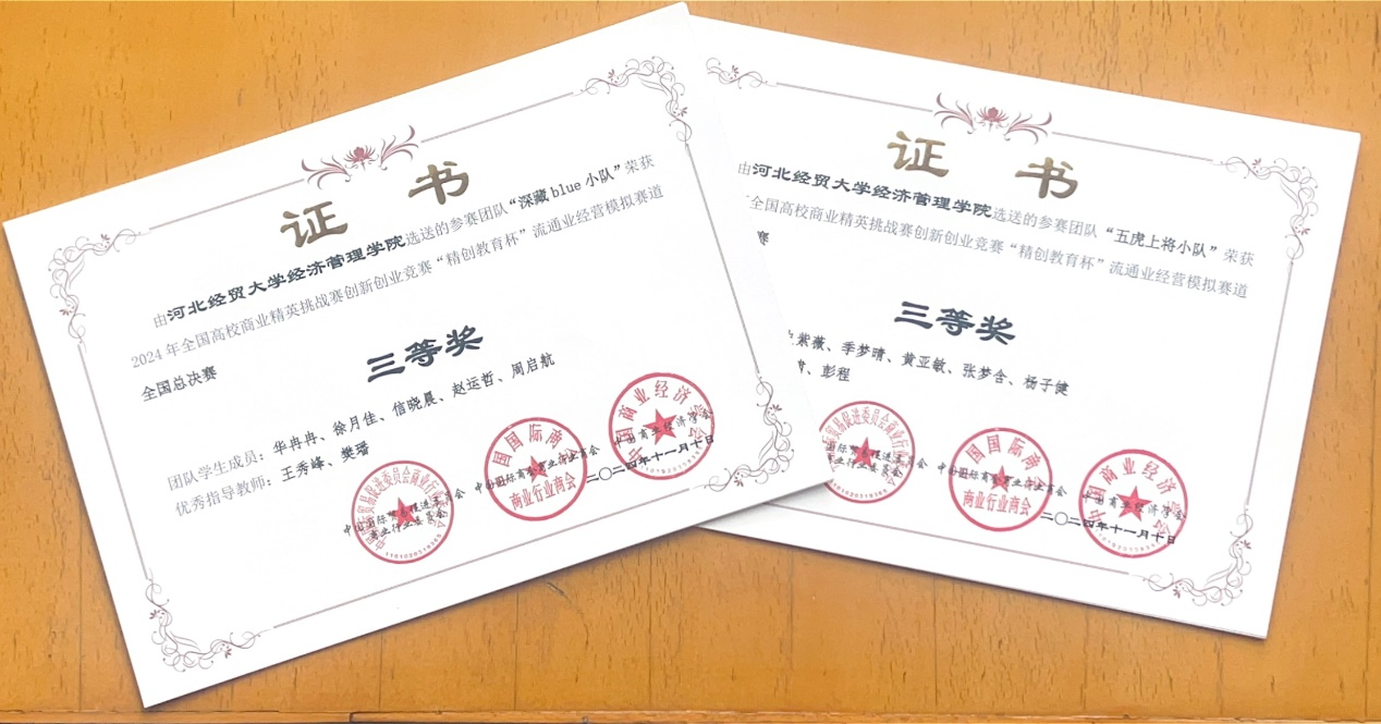 2022级贸易经济专业华冉冉和史紫薇为队长的两支代表队参加了本次比赛,最终分获全国总决赛三等奖。