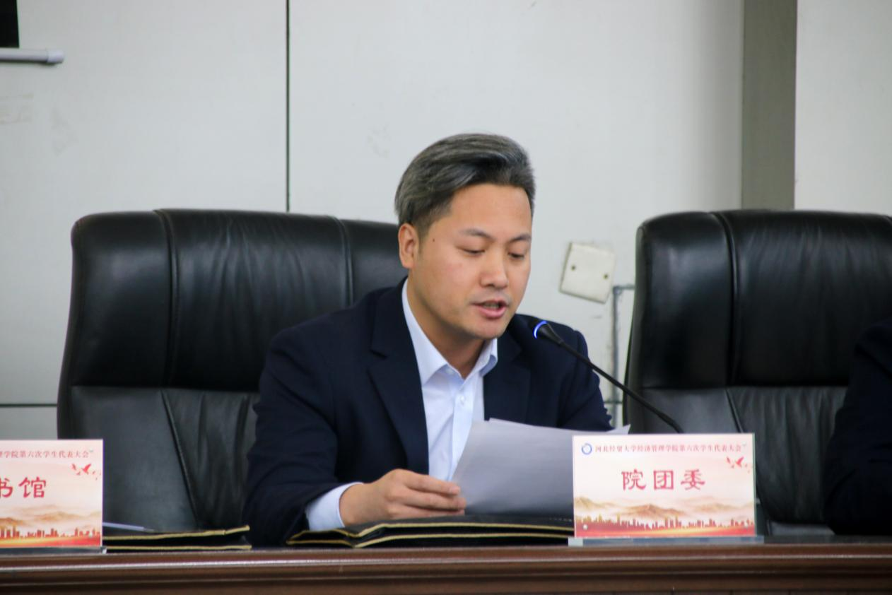 在图书馆报告厅隆重召开第六次学生代表大会。院党委副书记刘佳出席,院办公室、院团委、就业工作部、图书馆、实践教学部、学生工作部、后勤保障部负责人、各系团总支书记和187名学生代表参加了本次大会。