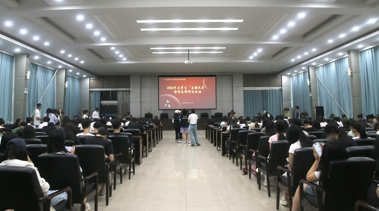 2025年度“大学生自强之星”评选活动在图书馆报告厅举行。党委副书记刘佳出席,部分系部负责人担任评委,200名学生代表到场聆听。