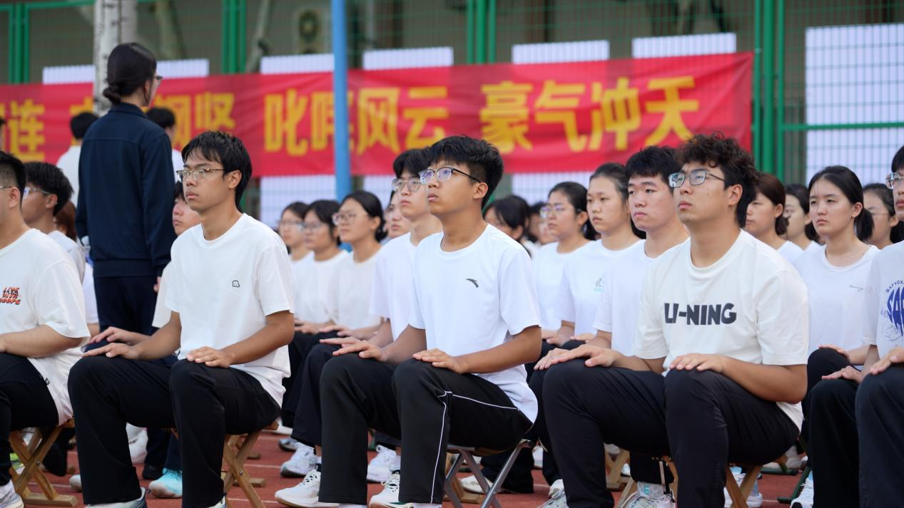 在雄壮的国歌声中,全体师生肃立并行注目礼,军训动员大会正式拉开序幕。