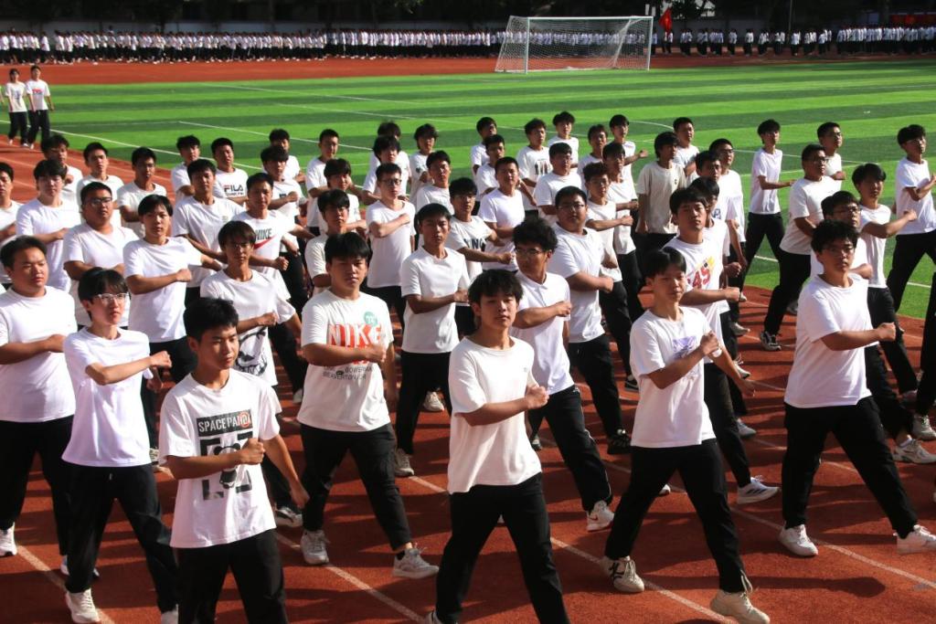 开学典礼结束后,军训结业式正式开始。六个连队精神抖擞、步伐铿锵,在《分列式进行曲》中依次通过主席台接受检阅,展现出两周刻苦训练的优异成果。国旗护卫队带训教官进行了队列展示,其过硬的军事素养和飒爽英姿赢得阵阵掌声。
