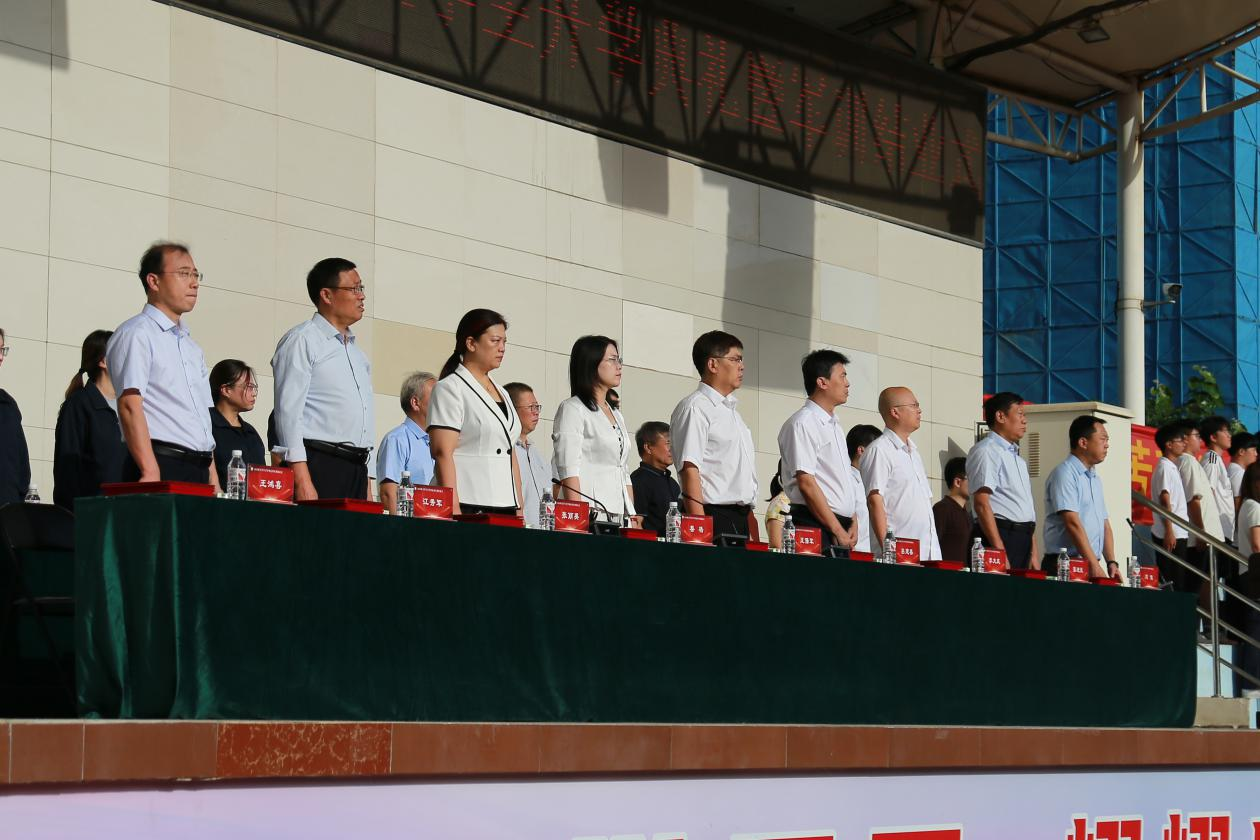 2025级新生开学典礼暨军训结业式在南校区操场隆重举行。校党委副书记王保军、学校办公室主任吕建春和学院领导班子成员出席活动,各系书记、主任及相关部门负责人于主席台就座,2025级全体新生参加。典礼由学院党委副书记刘佳主持。