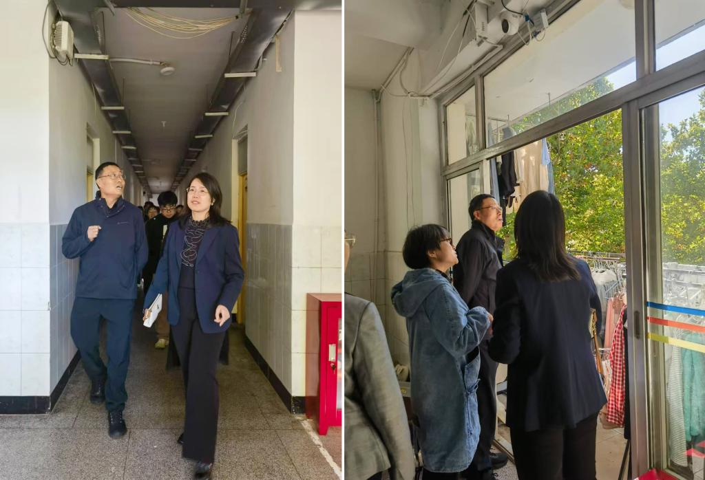 检查组一行径直走进学生宿舍,对宿舍内的消防安全、用电安全、设施维护及卫生环境等方面进行了重点排查。蔡杨、江秀军仔细查看了宿舍门窗、床铺护栏、水电设施等硬件状况,同时查看了宿舍消防设施是否齐全有效、安全通道是否畅通无阻,并与在场学生亲切交流,详细了解他们的日常生活和学习情况。叮嘱同学们要牢固树立“安全第一”的思想,严格遵守学校宿舍管理规定,增强自我防范意识,相互提醒、彼此监督,共同维护好宿舍这个“家”的安全与整洁。