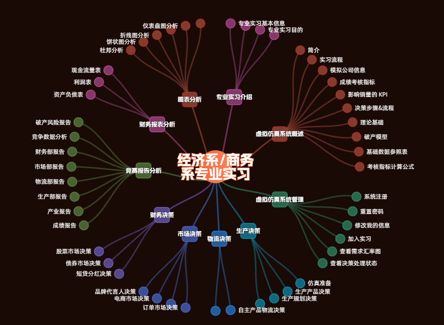 实习通过“策鸿BOSS”企业模拟经营系统进行模拟试运营及团队市场对抗,同时在“超星”学习平台上构建了“经济系/商务系专业实习”课程进行理论教学。在模拟的9年商业周期中,完整实践了从战略制定、生产运营到财务管理、市场竞争的全链条企业决策。10名实习指导教师全程在线跟进,通过平台实时数据、在线答疑与小组指导等形式,为学生提供了持续的教学支持与过程性反馈。
