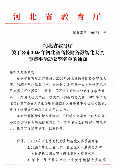 在2025年河北省高校财务数智化大赛中,由高燕教师指导,蒋伊凡等同学组成的“动漫屋