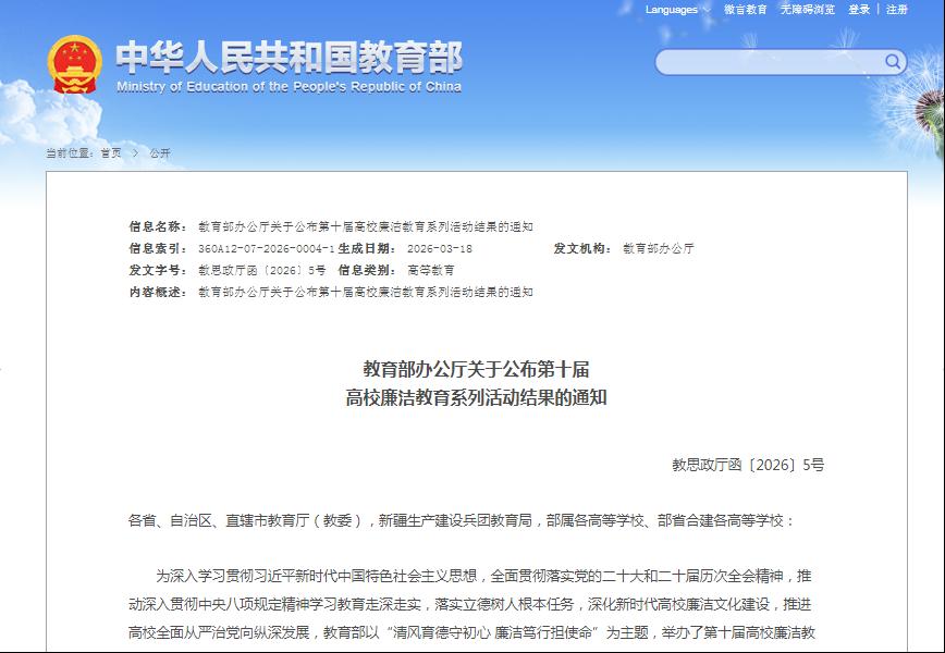 4月3日,教育部公布第十届高校廉洁教育系列活动评选结果,动漫屋