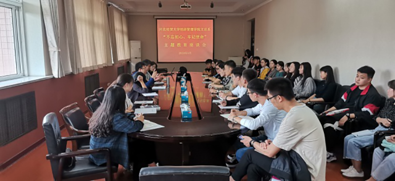 行政楼5楼会议室召开“不忘初心、牢记使命”主题教育座谈会,系党总支书记白建锋、主任赵占亚、党务秘书徐丹、教务秘书李珊出席,各班学生干部30余人参加。