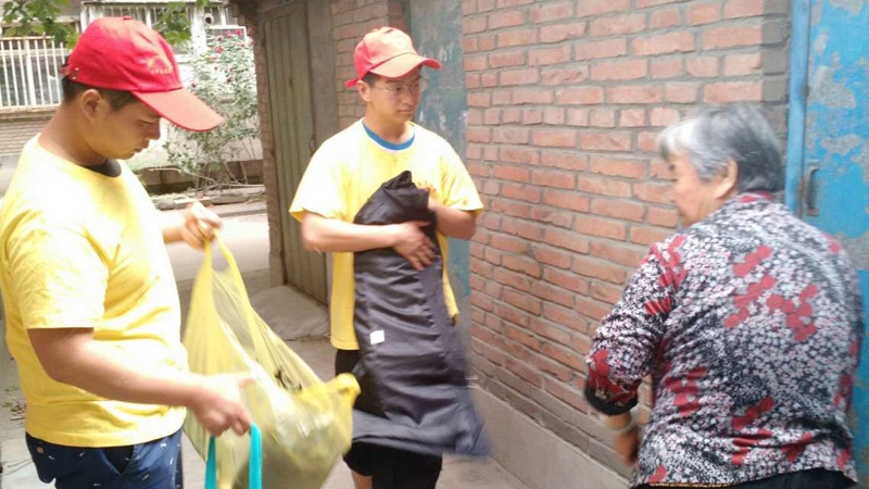 志愿者到家中接受捐赠衣物
