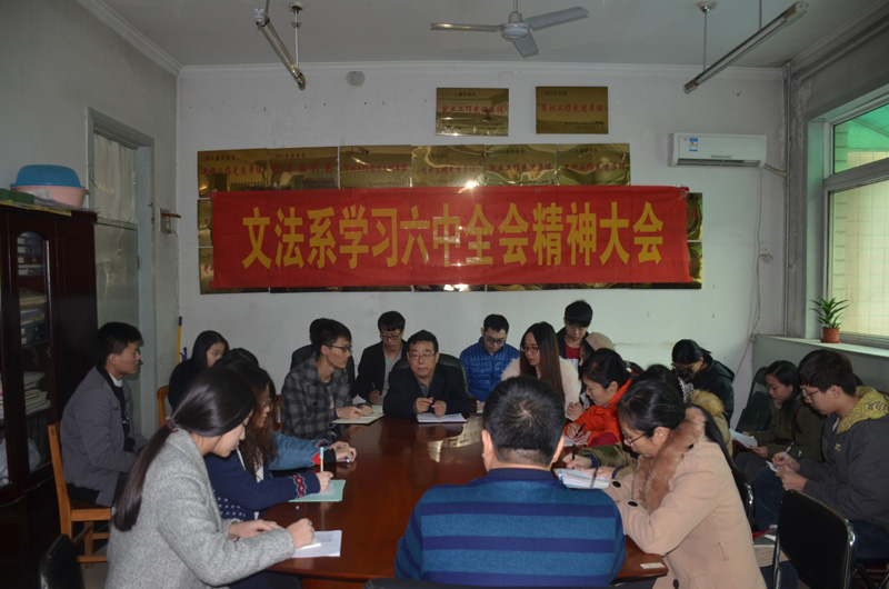 11月3日,文法系党总支召开党员大会,组织全体师生党员学习党的十八届六中全会精神。大会吸收部分入党积极分子参加。