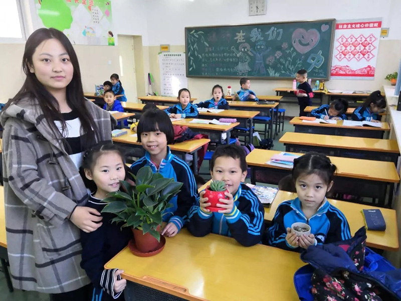 学生以及社会群众宣传了植树节的重要性以及保护环境的理念。经济系学生会的成员分别在校内甬道和校外路边设点宣传,并通过条幅签名、绿色手印、发放多肉植物盆栽等互动形式,提升大家的参与感,促使环保意识深入人心。与此同时,我系青志部还在志愿托管的机场路小学开展了植树节宣传,为孩子们讲解植树节的由来,就孩子们提出有关植树节和环境保护的问题进行了详细的解答,同时给孩子们带去了盆栽礼物。