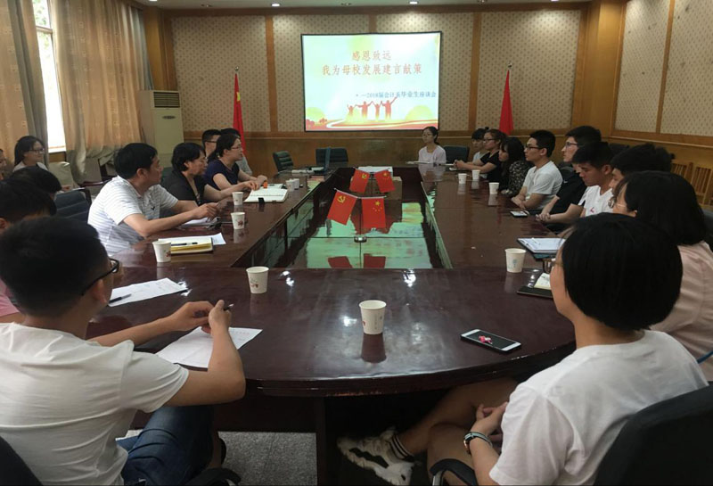 6月15日下午,会计系在西校区一楼会议室举行“感恩致远,我为母校发展建言献策”2018届毕业生座谈会。会计系党总支书记蔡杨、主任王慧霞、西区后勤部黄玉玢老师、弋建嵩老师出席,20多位毕业生代表参加了座谈。