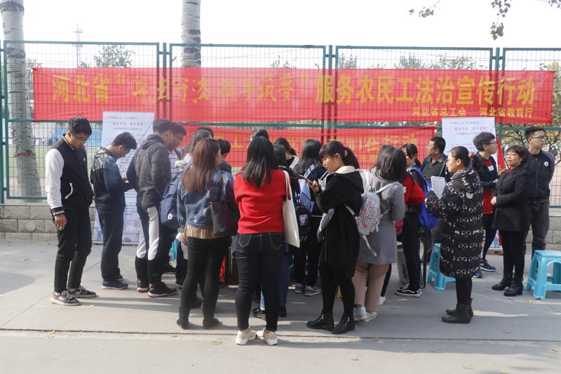 本次活动是总工会、教育部“尊法守法,携手筑梦”服务农民工法治宣传活动的延续,旨在“将法律知识带给大学生身边的农民工”,让更多的人了解到农民工的情况和需求。为了进一步扩大本次活动的宣传力度,现场发放了印有农民工法律知识问答内容的法制宣传彩页。两个班级的同学还将在一周内进行二次宣传,并在班级群组中反馈宣传成果,让大学生乃至身边更多的人了解到相关的法律知识。主题团日活动开始后,学校师生积极响应,热情参与,活动收到了预期的效果。