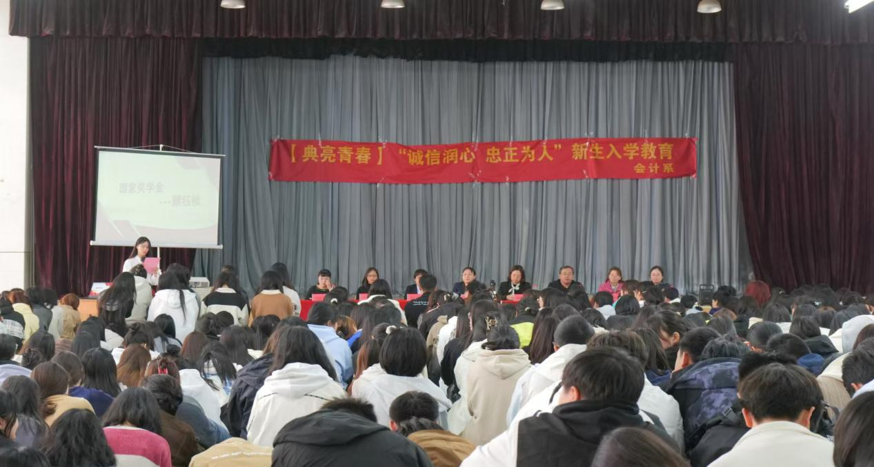 为帮助2024级新生顺利融入大学生活,会计系依照学院新生入学教育计划,于10月28日召开“诚信润心,忠正为人”2024级新生入学教育大会,会计系主任王慧霞、党委副书记张艳敏、全体辅导员老师及519名新生参加,大会由教务秘书邓怀宇主持。