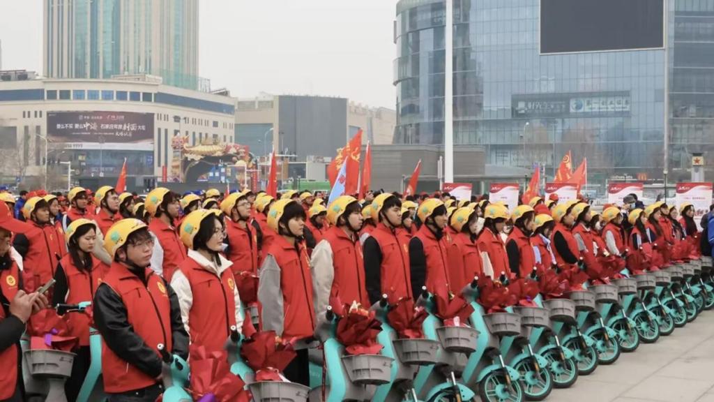 启动仪式结束后,我系志愿者骑着载有鲜花的单车,高呼口号,有序出发,开启绕城送花行动。每一朵鲜花都寄托着对雷锋精神的崇高敬意,每一次传递都让更多人深刻感受到奉献的价值与力量。