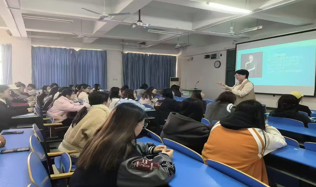首先,赵占亚详细解读了大学生英语竞赛,重点梳理了大学生英语竞赛的题型设置、答题要求和分值分配。接着,房丹从夯实和扩展英语基础知识和基本技能、全面培养与提高学生的英语应用能力和综合素养、培养学生英语思维和表达能力等角度入手,结合大学生英语竞赛的不同题型给出了翔实具体的应试技巧和策略。同学们认真聆听,现场气氛活跃。