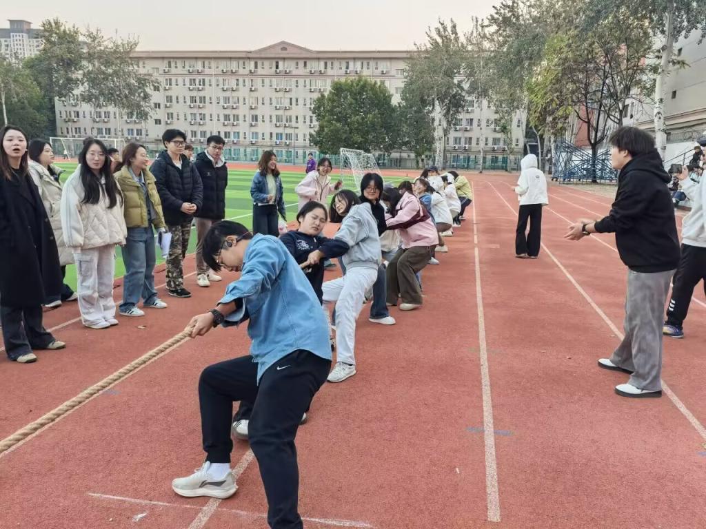 本次趣味运动会参赛项目有文艺表演和袋鼠跳、拔河、推铁环等。秋日操场人声鼎沸,各参赛选手表现积极踊跃,场外呐喊与欢笑交织成欢乐乐章。“袋鼠跳”的滑稽蹦跳、“推铁环”的默契配合、拔河比赛的全力比拼,让赛场活力四射。在场边啦啦队的振臂欢呼声中,拔河比赛将赛场气氛推向高潮,每一个专注的身影都彰显着青春的活力。最终,25级人力1班和25级物流1班分获不同项目冠军。