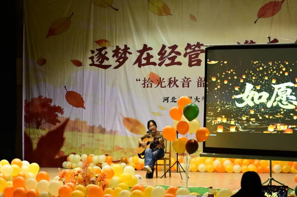 整场晚会以“秋”为脉络、以“韶华”为灵魂,通过“秋颂家国·丹心咏志”“秋赋雅韵·金风传情”“秋融四海·中外汇新”三个篇章层层推进,为观众带来了一场精彩纷呈的文化盛宴。舞蹈《华夏》以水袖轻扬勾勒千年文脉,刚劲舞姿彰显民族气魄,瞬间点燃了全场气氛;师生联袂的“朗诵+合唱《快乐崇拜》”创意独特,既有对祖国的深情告白,又有活力四射的旋律交融,展现了师生同心的精神风貌;话剧《两弹一星》以时空对话形式再现科研先驱的奋斗历程,台词铿锵、情感真挚,将家国情怀与青春担当诠释得淋漓尽致;古筝独奏《战台风》则以指尖翻飞奏出磅礴意境,尽显传统乐器的独特魅力,让在场学子沉浸式感受了中华优秀传统文化的博大精深。
