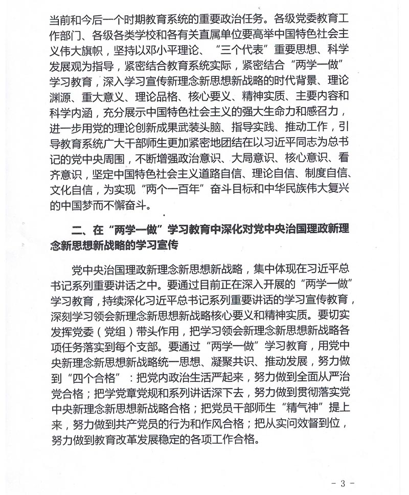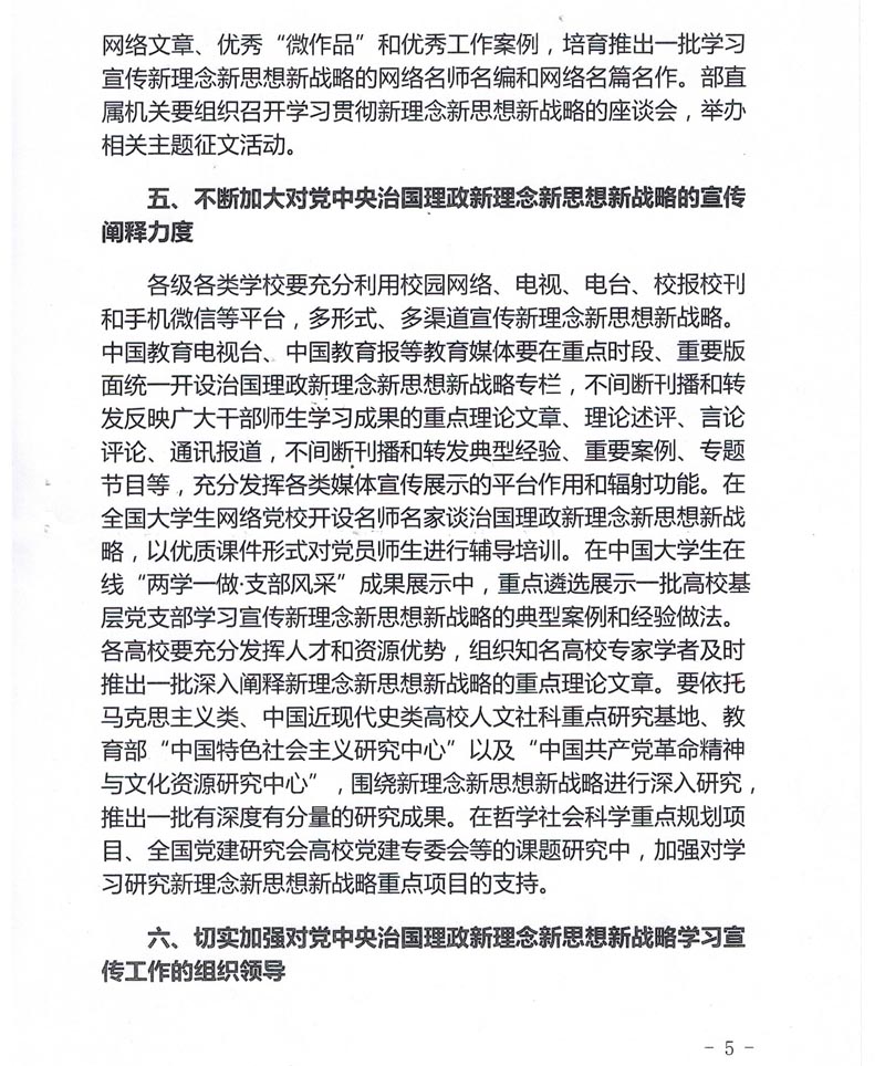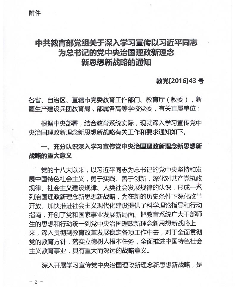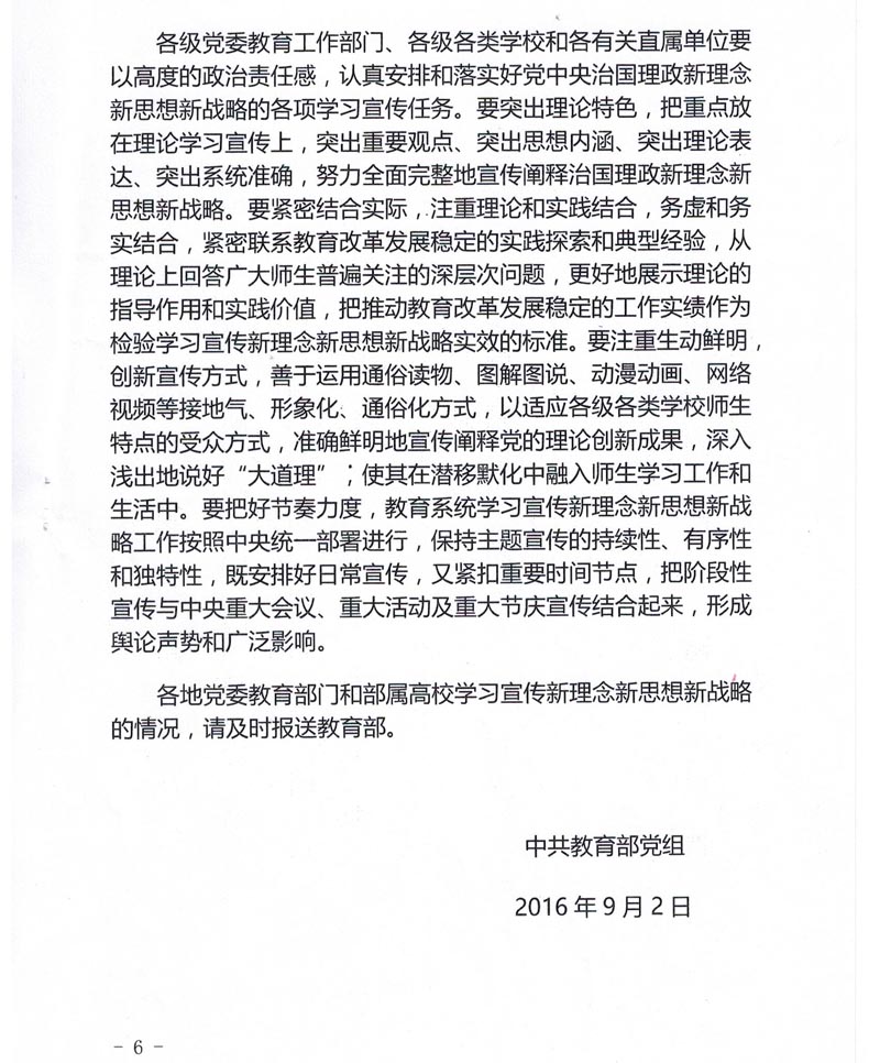 附件:《中共教育部党组关于深入学习宣传以习近平同志为核心的党中央治国理政新理念新思想新战略的通知》