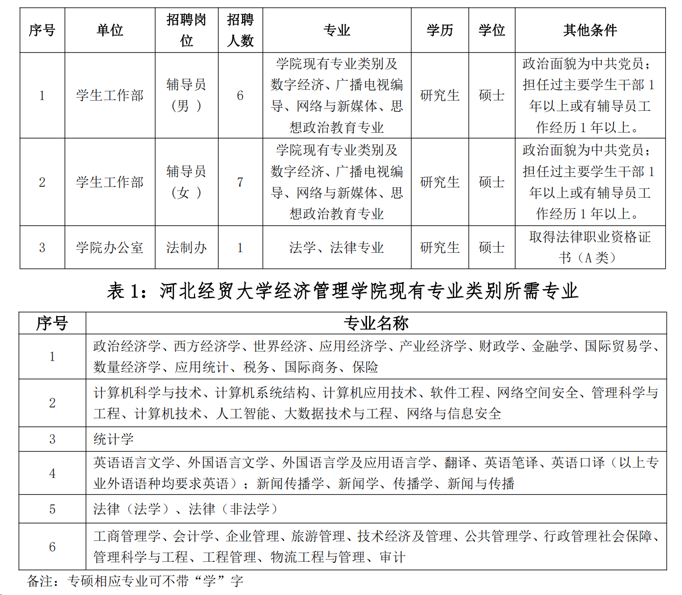 (五)应聘人员在报名时,岗位条件中涉及专业类别的问题,可参考教育部《授予博士、硕士学位和培养研究生的学科、专业目录》、《普通高等学校本科专业目录》。
