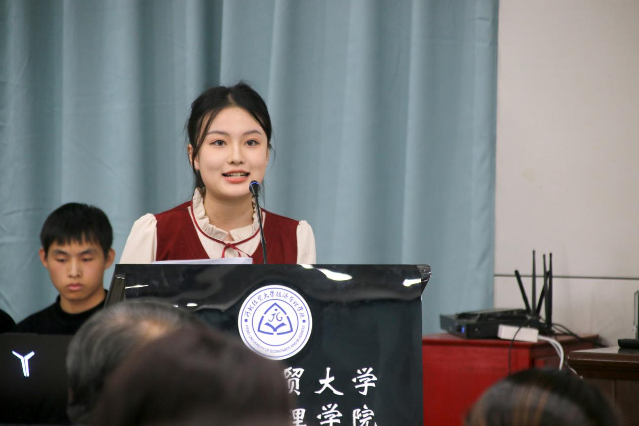 出于对读书的喜爱和知识分享的热爱,管理系白语竺希望能够通过这次机会与其他书友交流心得,拓宽视野。备赛过程中也会有困难与挑战,商务系赵佳欣讲述了自己备赛中的困难:“无论是初赛视频录制,还是复赛现场演练总在反复调试镜头、修改内容,怕不能在有限时间内精炼地概括出这本书的内涵,不记得重来了多少次。在系书记和辅导员老师的鼓励和帮助下,终于圆满地完成了这次分享。”