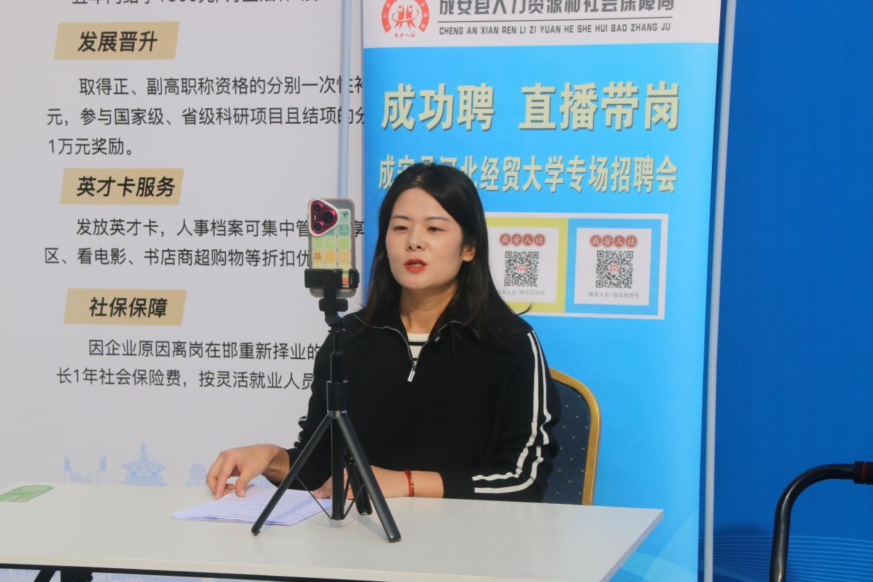 到场的各家企业单位也做好了充足准备,将自身的动漫屋、发展情况、岗位要求以及薪资待遇等内容浓缩成招聘简章向现场的毕业生分发,并对前来咨询的毕业生答疑解惑。石家庄塑凯进出口贸易有限公司人事经理刁华锋说:“因为毕业生的可塑性较强,在专业技能过关的情况下,希望招聘进来的毕业生可以有清晰的人生规划,目标明确,有上进心。”现场的大多数企业单位期望同学们提前做好职业规划,制定明确的发展目标,放下身段,积极参与到就业工作中。此次双选会吸引邯郸市邯山区人才交流开发中心和成安县人力资源和社会保障局主动参与,他们凭借“十万学子进邯郸”人才政策优势,携当地20余家单位来到现场开设邯郸专区,并进行直播带岗活动,吸引动漫屋
