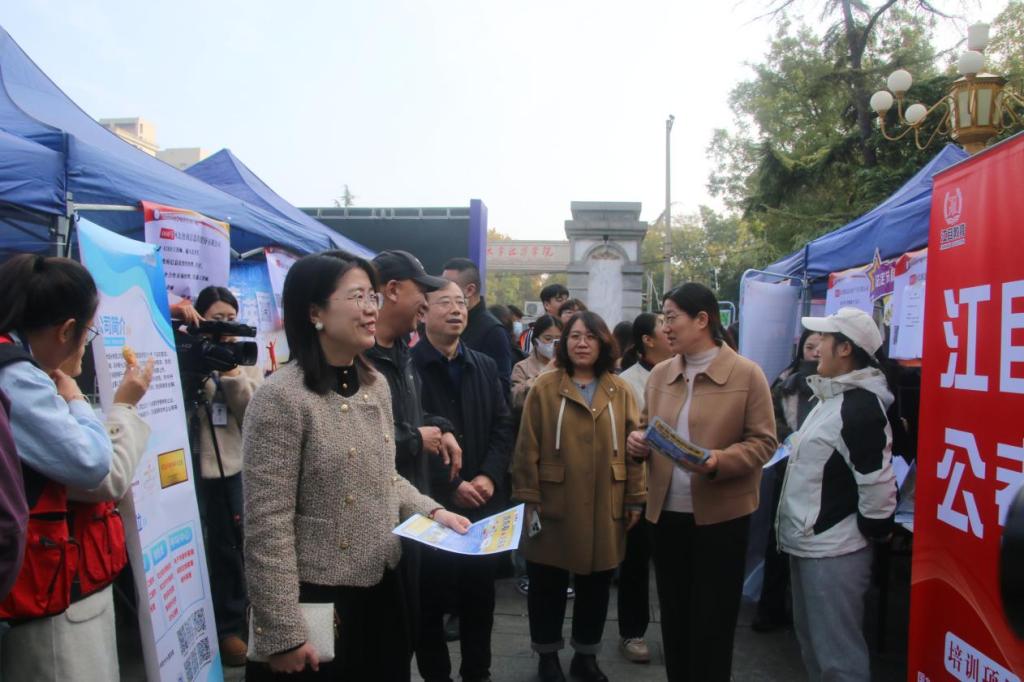 学院领导蔡杨、王鸿喜和各系负责人深入双选会现场,与招聘企业代表交流沟通,详细了解用人单位岗位需求、行业发展趋势,鼓励毕业生转变就业观念,主动出击把握就业机会。