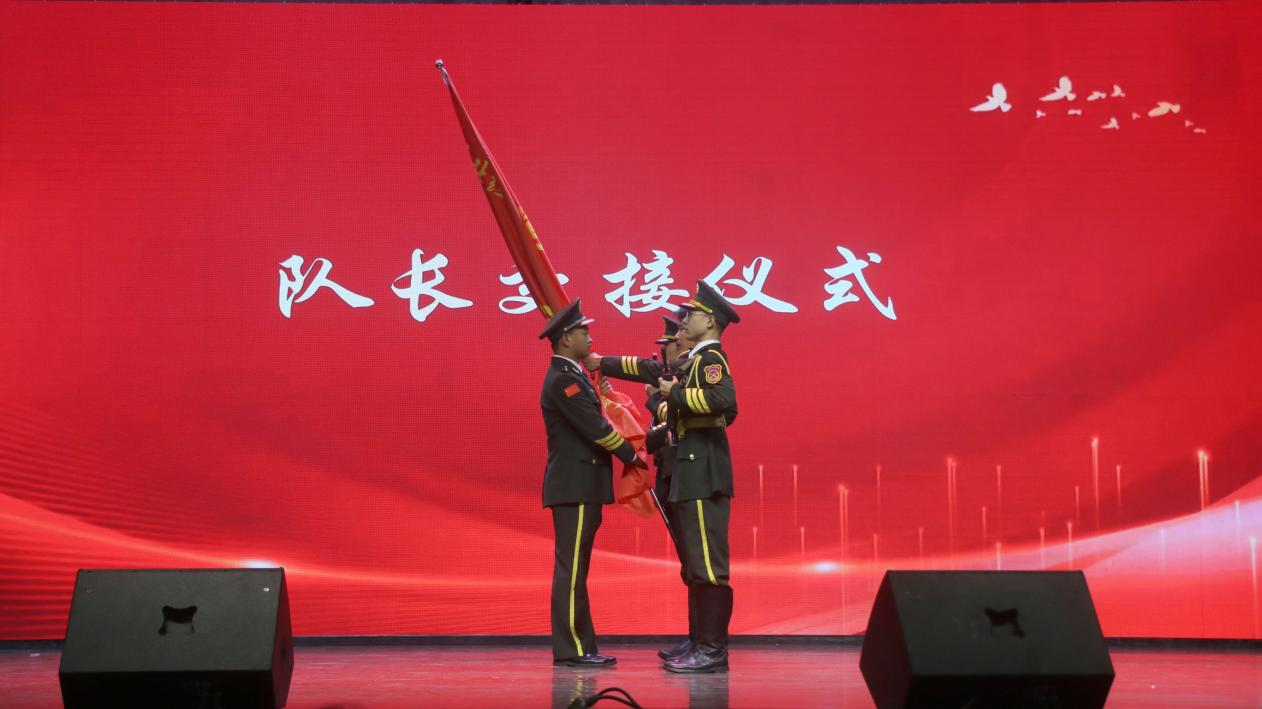 换届环节庄严有序。22级队干为23级队员卸下臂章,象征着责任与荣誉的传递;新老队员代表郑重交接国旗、指挥刀与礼宾枪,完成使命的接力。学院领导为退任队干颁发荣誉证书,并为第十七届队干颁发聘书。