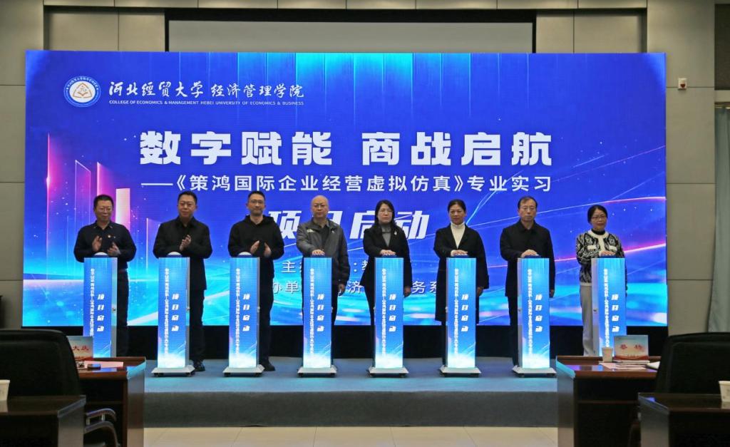 启动仪式最后,嘉宾与学院领导共同按下启动键,“策鸿国际企业经营虚拟仿真”专业实习正式拉开帷幕。