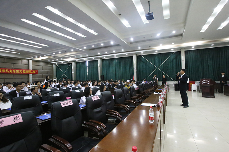 2019年“青年马克思主义者培养工程”骨干培训班开班仪式在学院图书馆报告厅举行。学院党委书记张进良、副书记张丽英、各系党总支书记出席,学院团委、各系团总支书记、青马临时团支部辅导员及本期培训班200名学员参加了开班仪式。仪式结束后,张进良书记作了首场专题报告。