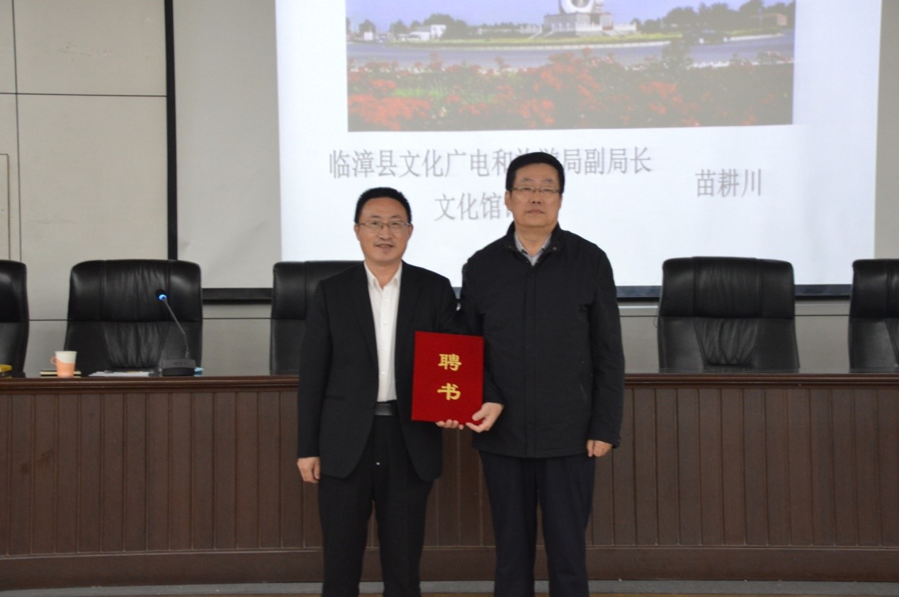 邀请河北省临漳县文化广电和旅游局副局长、临漳县文化馆馆长苗耕川在图书馆报告厅做《说三人、话邺城》主题讲座。学院领导张金桐莅临现场并为苗耕川馆长颁发动漫屋